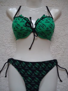Costum Baie Dama Verde Monograme Negre 2 Piese Sutien Push Up Slip