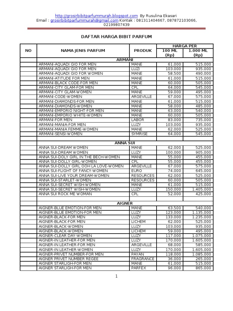 Harga Bibit Parfum 1 Perfumery Perfume